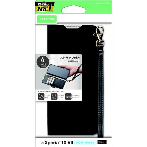エレコム ELECOM Xperia 10 VII (SO-52F)/手帳型ケース/磁石付/耐衝撃/ハンドストラップ付 PM-X252PLFY4BK
