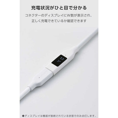 コネクター部に搭載されたディスプレイで、接続した機器への充電電力値がリアルタイムで確認できます。