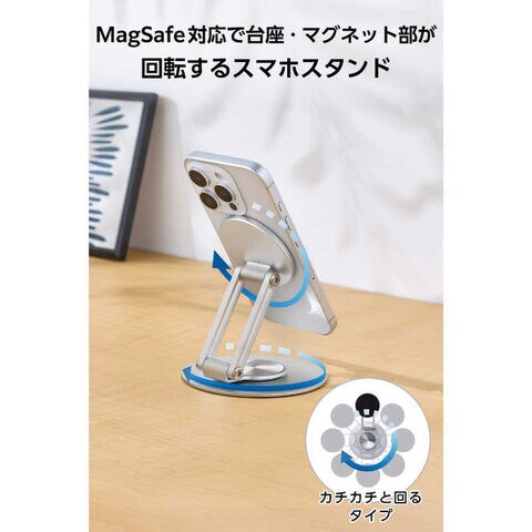 エレコム ELECOM MagSafe マグネット スマホスタンド メタルプレート付属 iPhone Android使用可 シルバー P-DSM360AL01NSV