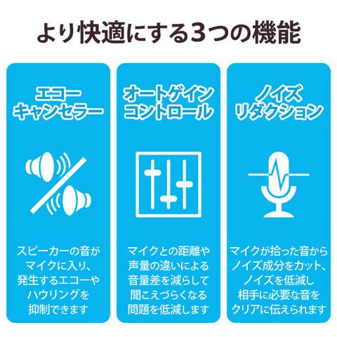 エコーキャンセラー機能により、スピーカーからの音をマイクが拾ってしまうことで生じるエコーやハウリングを抑制します。