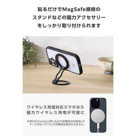 MagSafe非対応のスマホケースに貼り付けることで、MagSafe規格のスマホリングやスタンド、カードケースなどの磁力アクセサリーをしっかり取り付けられます。