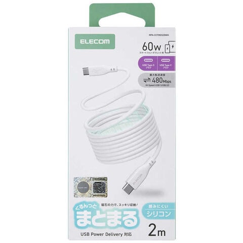 エレコム ELECOM USB-C ケーブル PD60W USB Type-C to Type-C 2m 急速充電 シリコン 柔らかく絡まりにくい ホワイト MPA-CCTMGS20WH