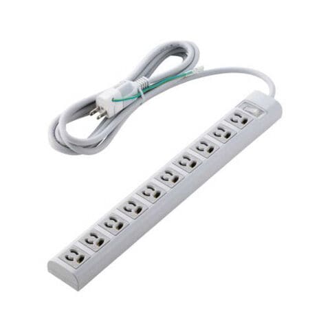 プラグと差込口はそれぞれ3ピン接続の構成で、10口ある差込口には抜け止め機能を備えています。