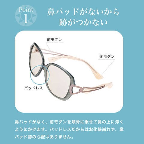パッドレスだからお化粧崩れや鼻パッド跡の心配はありません。