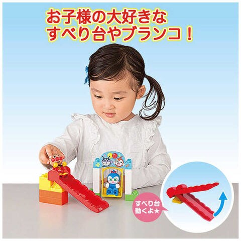 大きなこうえんや遊具を作って、手足が動くアンパンマンやコキンちゃんのドールと一緒に遊ぶことができます。