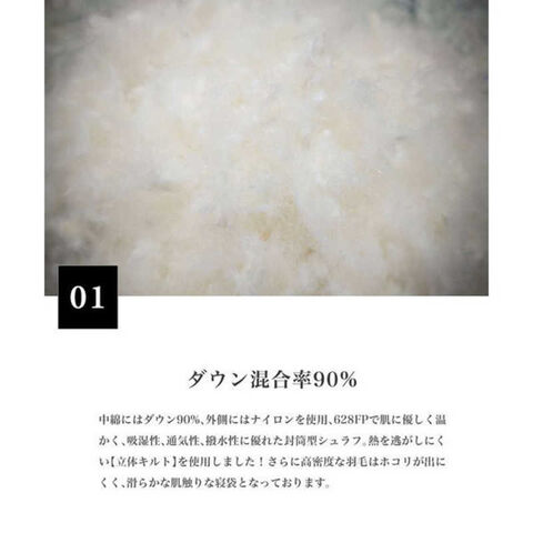 さらに高密度な羽毛は埃が出にくく、滑らかな肌触りな寝袋となっています。