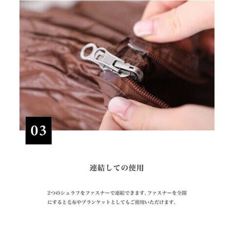 2つのシュラフをファスナーで連結できます。