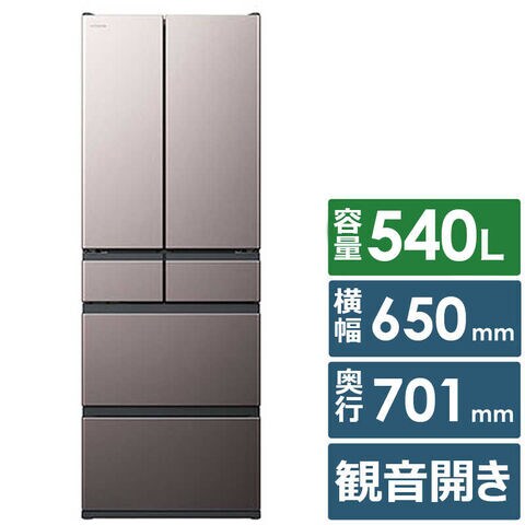 日立 HITACHI 冷蔵庫 6ドア 540L フレンチドア(観音開き) HWCタイプ 幅65cm ブラストモーブグレー R-HWC54X-H(標準設置無料)