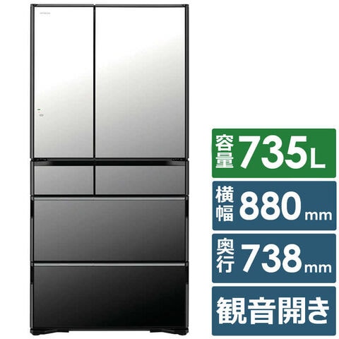 日立 HITACHI 冷蔵庫 6ドア 735L フレンチドア(観音開き) WXCタイプ まんなか冷凍 幅88cm クリスタルミラー (要事前見積) R-WXC74X-X(標準設置無料)