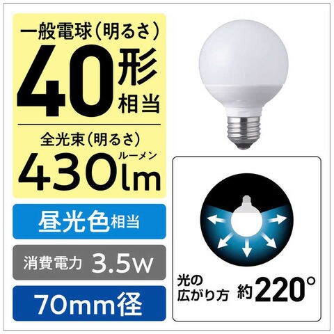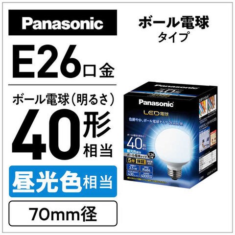 パナソニック Panasonic LED電球 ホワイト [E26/昼光色/40W相当/ボール電球形/広配光] [LDG4DG70W] LDG4D-G/70/W