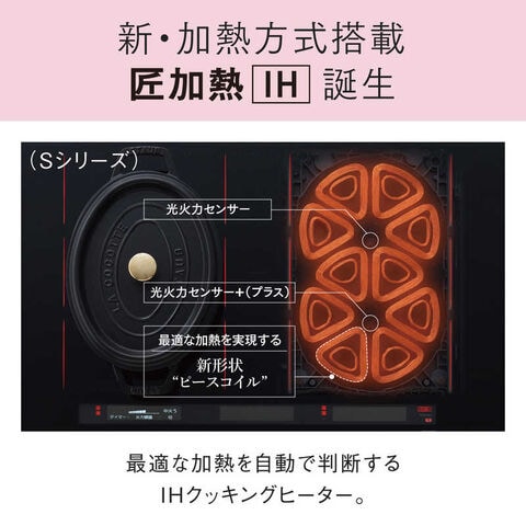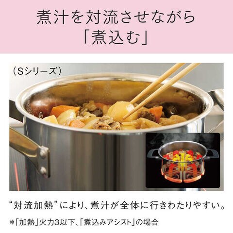 1.焼く・煮る・揚げるが進化し、料理の楽しさひろがる新・加熱制御方式で、焼き物は、大きなフライパンでも焼きムラを抑え、煮物は、対流調理で上手に美味しく仕上がる。
