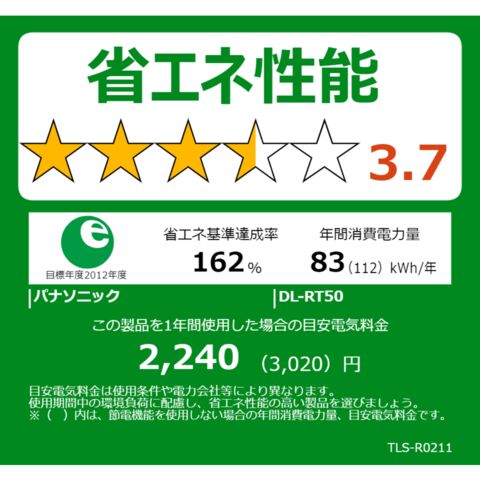 年間消費電力量(節電機能を使用しない場合):112kWh