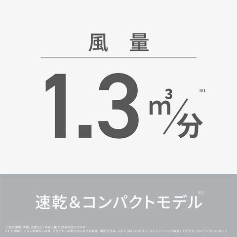 (※1)TURBO・ノズル装着なしの時、ドライヤーの吹出口における風量。
