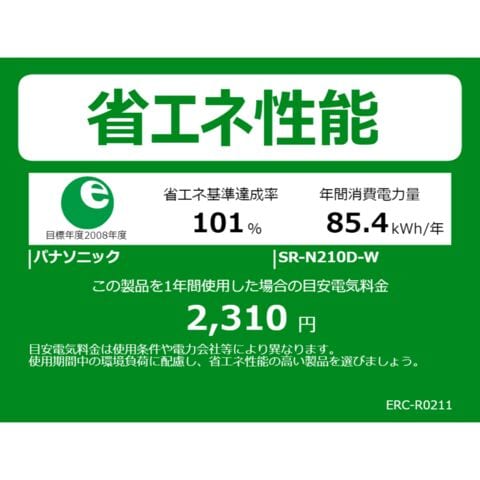 消費電力量(炊飯時):154Wh/回(エコ炊飯)