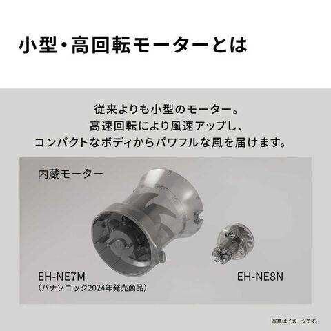 ※3、当社2024年発売EH-NE7M(約550g)とEH-NE8N(約455g)とのコードを含む質量比較(当社調べ)※4、当社2024年発売EH-NE7MとEH-NE8Nとのブッシング以降のコードを含まない体積比較(当社調べ)