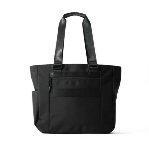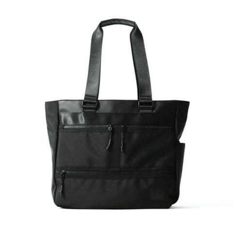 ブラックの陰影をつけたワントーンと、シャープなフォルムが都会的なトートバッグ。