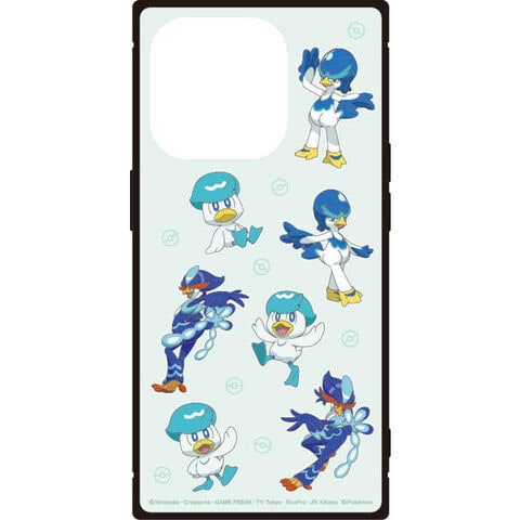 グルマンディーズ ポケットモンスター iPhone 15Pro スクエアガラスケース ブルー POKE-895C