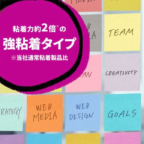 ●約2倍の粘着力(3M通常粘着比)で、パソコンや電話、キャビネットなどの樹脂面や垂直面など、つきにくかった場所にもしっかり貼れてはがれにくい製品です。