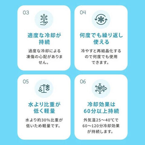 外気温25~40度で60~120分冷却効果が持続します。