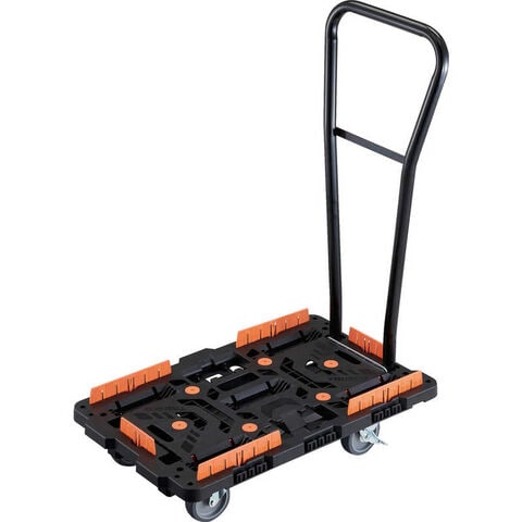トラスコ中山 TRUSCO連結式樹脂製平台車ビートル700X450自在5輪内2輪ストッパー付脱着式ハンドル付柵付 BT700KJ5S2HE100