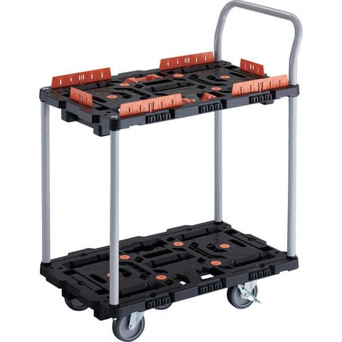 トラスコ中山 TRUSCO連結式樹脂製2段台車ビートル700X450自在5輪内2輪ストッパー付柵とめたろうハンドル付 BT724KJ5S2E100T