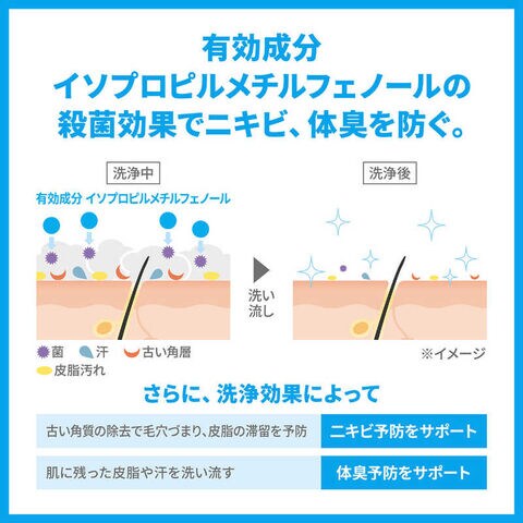 薬用デオドラント成分の働きで汗のニオイをしっかり防いで素肌を爽快に洗い上げるボディシャンプー。