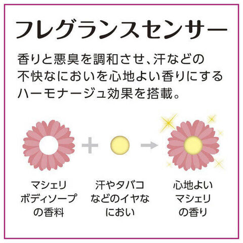 マシェリ独自のフレグランスセンサー機能で不快なにおいを心地よい香りにするボディソープ。