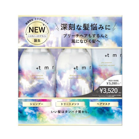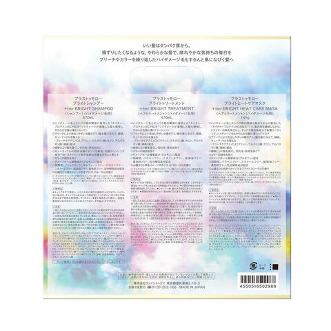 数量限定品、プラストゥモロー ブライトシャンプー 470mL、プラストゥモロー ブライトトリートメント 470mL、プラストゥモロー ブライトヒートケアマスク 145g
