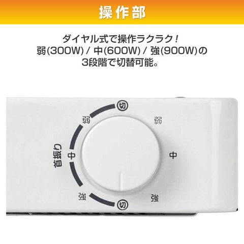 ヤマゼン 電気ストーブ 900W 首振り機能 転倒オフ機能 DS-M094-W