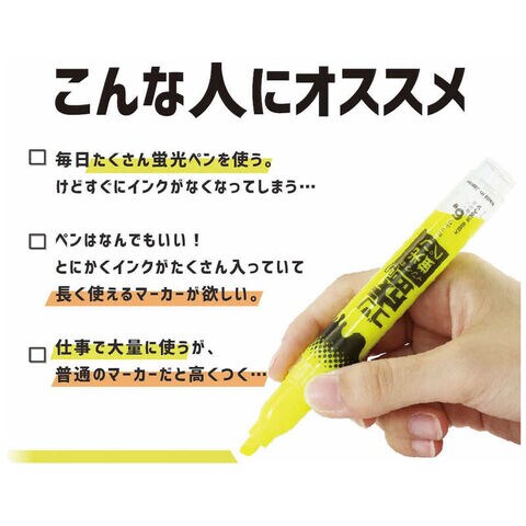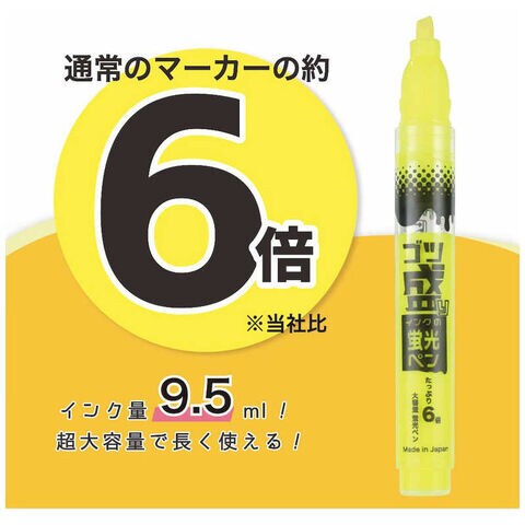 待望の蛍光ペンが登場!!インク量が9.5mlなので長く使えて便利! 通常のマーカーの約6倍です!(当社比)