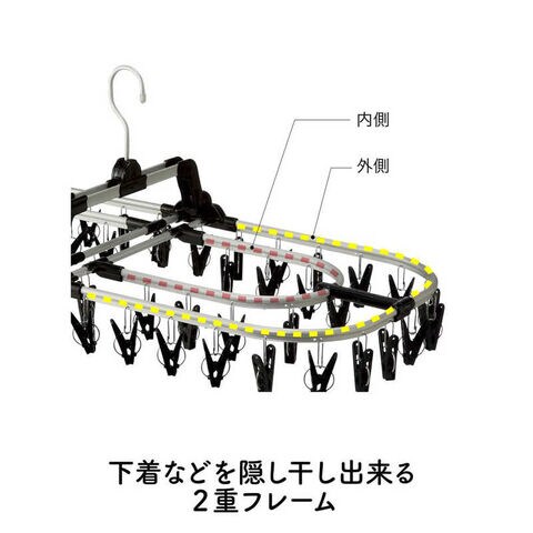 外側フレームと内側フレームのピンチ位置がずれているので、洗濯物が乾きやすい!