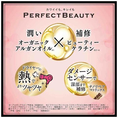 オーガニックアルガンオイルと独自のビューティーケラチン処方でダメージを補修。