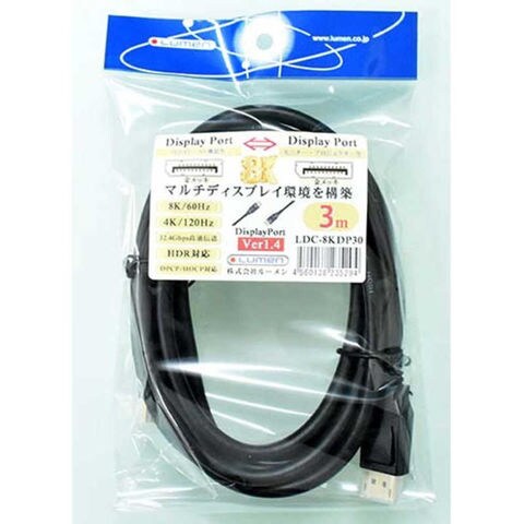ルーメン 8K対応 DisplayPort -DisplayPortケーブル Ver1.4 3m ルーメン [LDC8KDP30] LDC-8KDP30 ブラック
