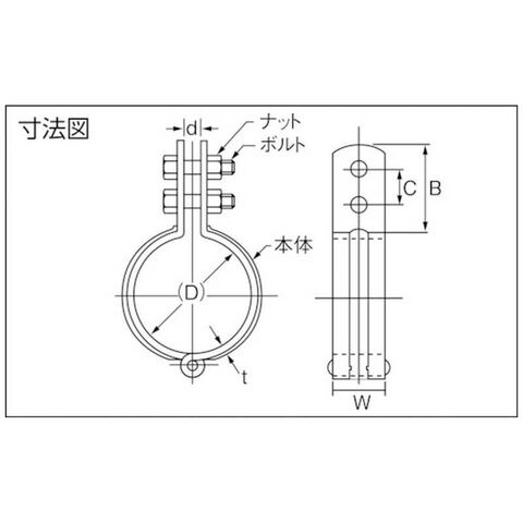適合管外径(mm):76.3、寸法(mm)C:20、寸法(mm) d:6、寸法(mm)W:25、寸法(mm)B:45、寸法(mm)t:2.3、