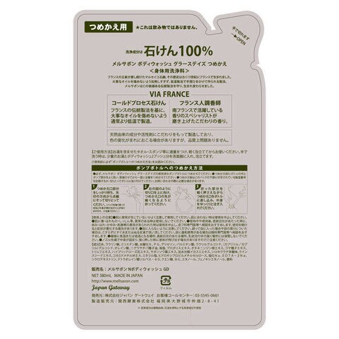 ジャパンゲートウエイ MELLSAVON(メルサボン)ボディウォッシュ 詰め替え用 380mL グラースデイズ