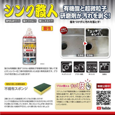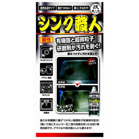 シンク職人は、キッチンや水まわりの汚れ除去のために開発された洗剤です。