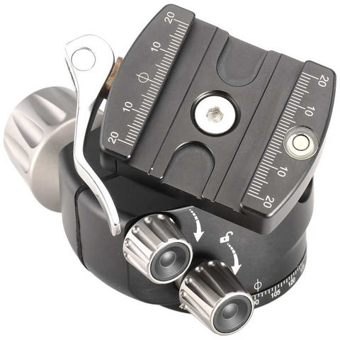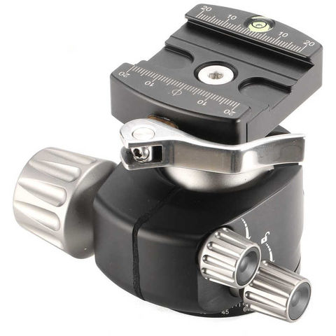 レバータイプのプレートリリース機構を搭載したコンパクトな低重心型ボール雲台。