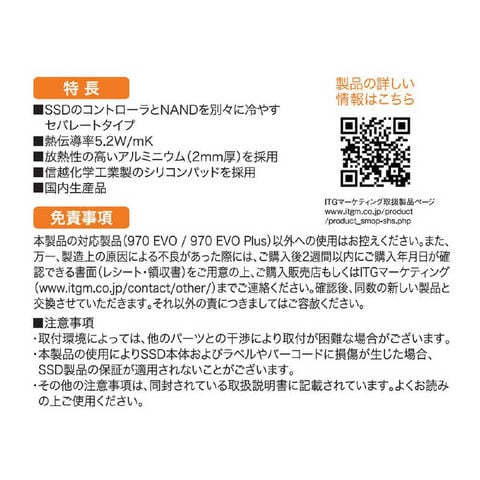 ITGマーケティング Samsung NVMe SSD専用 長尾製作所 特製 セパレートヒートシンク SMOPSHS