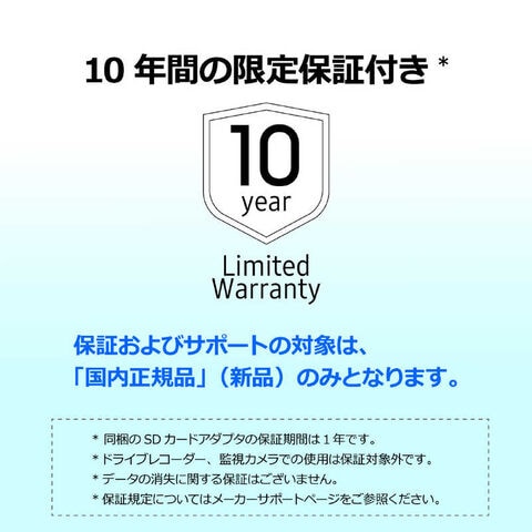 仕様2:[保証]10年保証(ドライブレコーダー/監視カメラでの使用は保証対象外となります。)※データの消失に関する保証はございません。