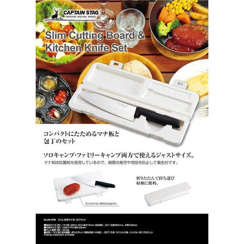 キャプテンスタッグ アウトドア用品 スリム 抗菌まな板包丁セット ホワイト UH-4709