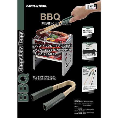 キャプテンスタッグ アウトドア用品 BBQ割りばしトング オリーブ/ベージュ UG-3294