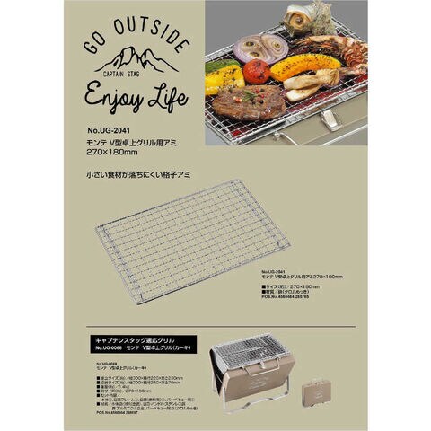キャプテンスタッグ モンテ V型卓上グリル(UG-66)用 交換アミ 270×180mm UG-2041