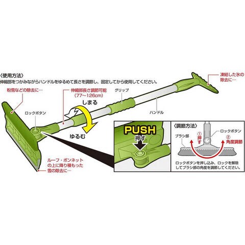 キャプテンスタッグ アルミ折畳み式スノーブラシ グリーン