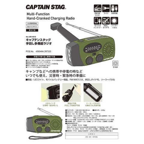 キャプテンスタッグ 手回し多機能ラジオ [AM/FM] UW-4510