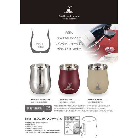 キャプテンスタッグ 「香る」真空二重タンブラー240 シルバー・ミラー UE-3570