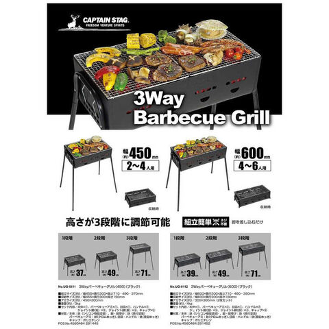キャプテンスタッグ 3Wayバーベキューグリル450 ブラック UG-0111