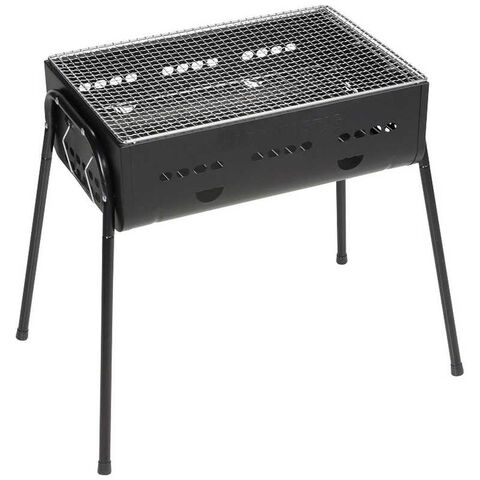 仕様1:本体=鉄(シリコン樹脂塗装) 脚・脚受け=鉄(焼付塗装) バーベキューアミ=鉄(クロムめっき) 目皿・ハンドル=鉄(亜鉛めっき) キャップ=ポリエチレン