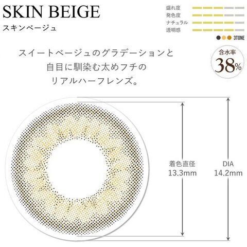 低含水レンズ(38%):【1DAY】SKIN BEIGE、SKIN GREGE、NUDE CHOCOLATE、WATER WATER、CREAM BEIGE、CREAM GREGE、CHOCOLATE