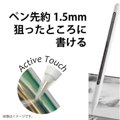 AREA [タッチペン:ipad用] 充電式 アクティブタッチペン(シースルーデザイン) 極細 先端1.5mm マグネット付 ホワイト MS-APTP13
