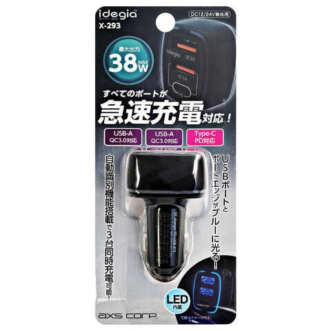 アークス 3ポートDC充電器 PD+A2 ブラック X-293